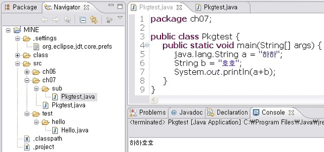 Once you have created your package you may want to use it in your program or you may wish to use another programmer's package or the packages in the Java API. There are three ways of using the resources in a package; inline package member declarations, importing only the package member that you want and importing the entire package. 3.3.1. ... Fetch Doc